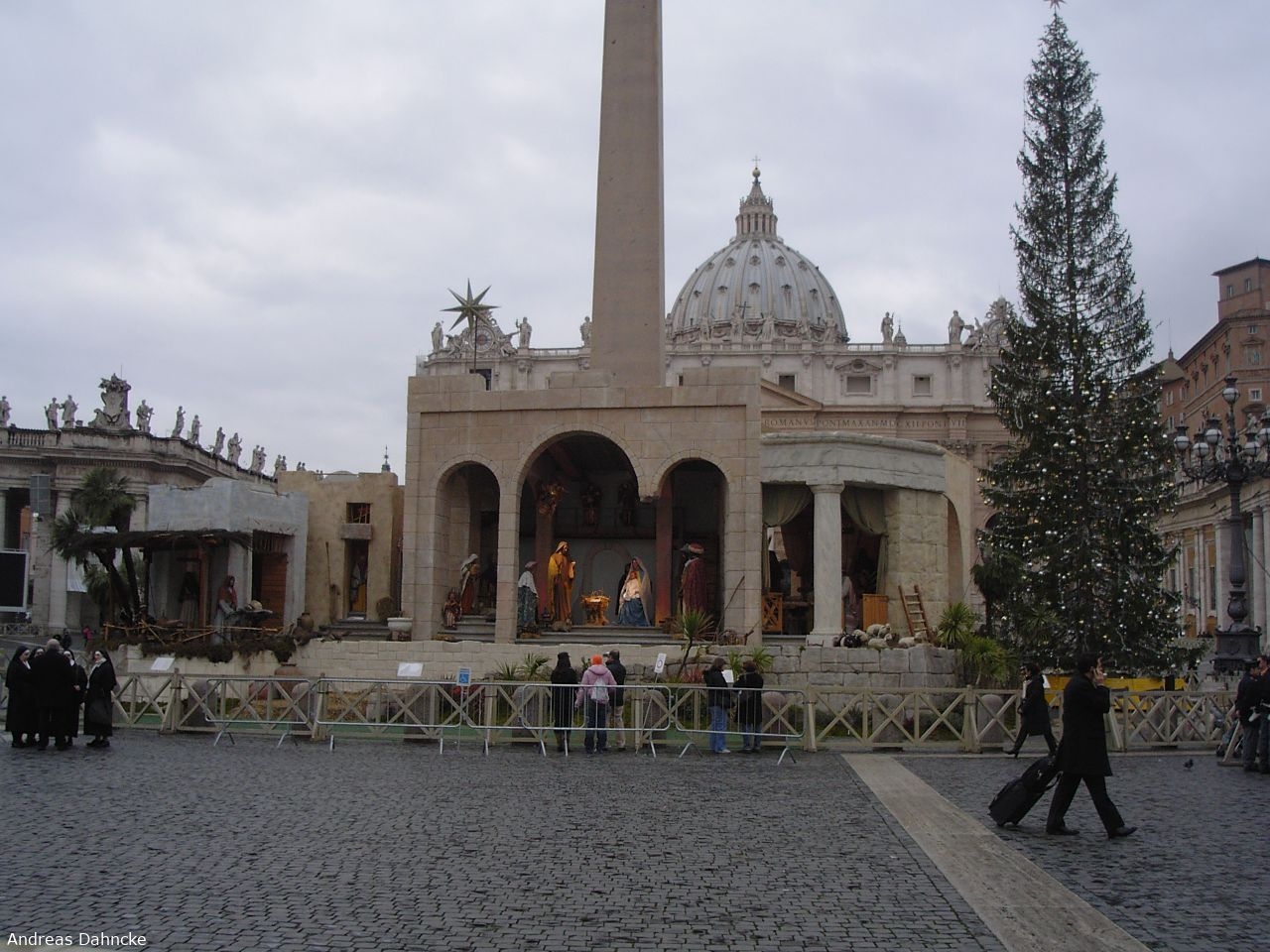 Petersplatz mit der Weihnachtskrippe vor dem Petersdom