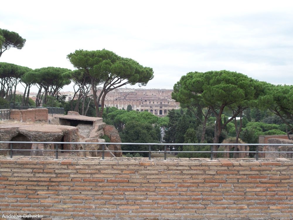 Palatin: Oben auf dem Domus Septimius Severus mit Blick auf das Colosseum