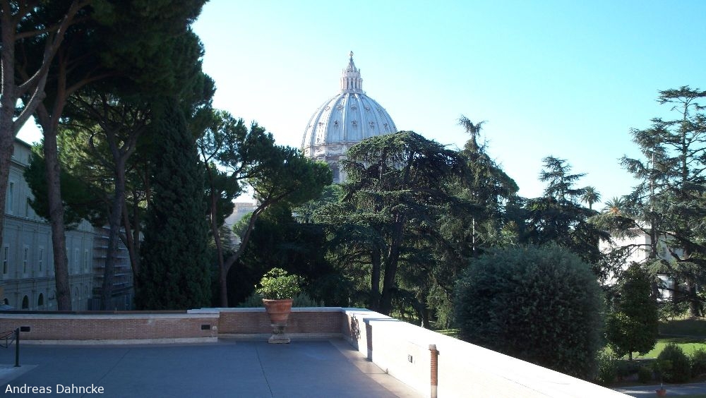 Blick von der Terrasse auf die Kuppel vom Petersdom, San Pietro