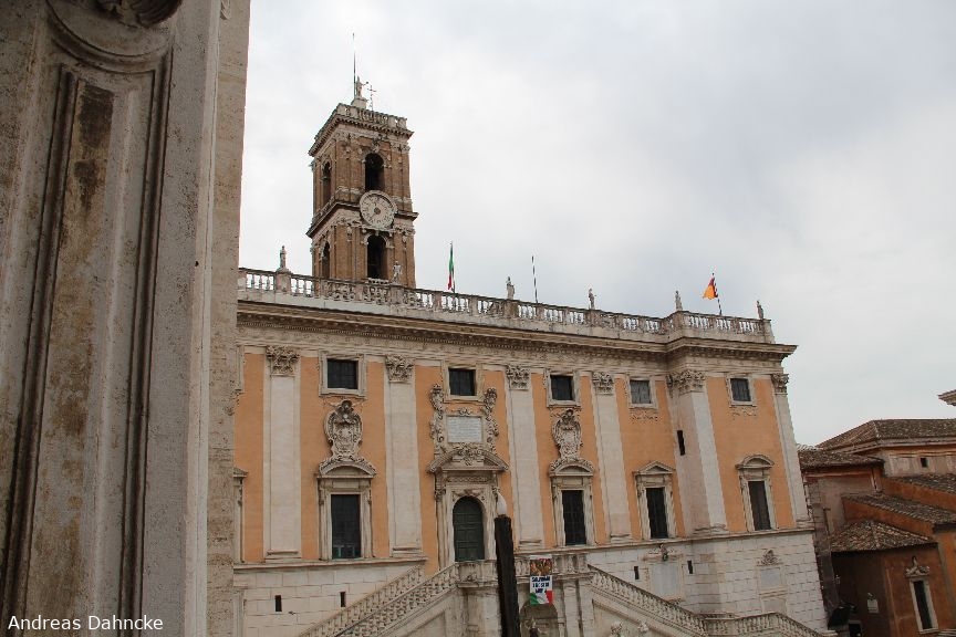 Blick aus dem Palazzo Nuovo auf den Palazzo Senatorio (Roms Rathaus)