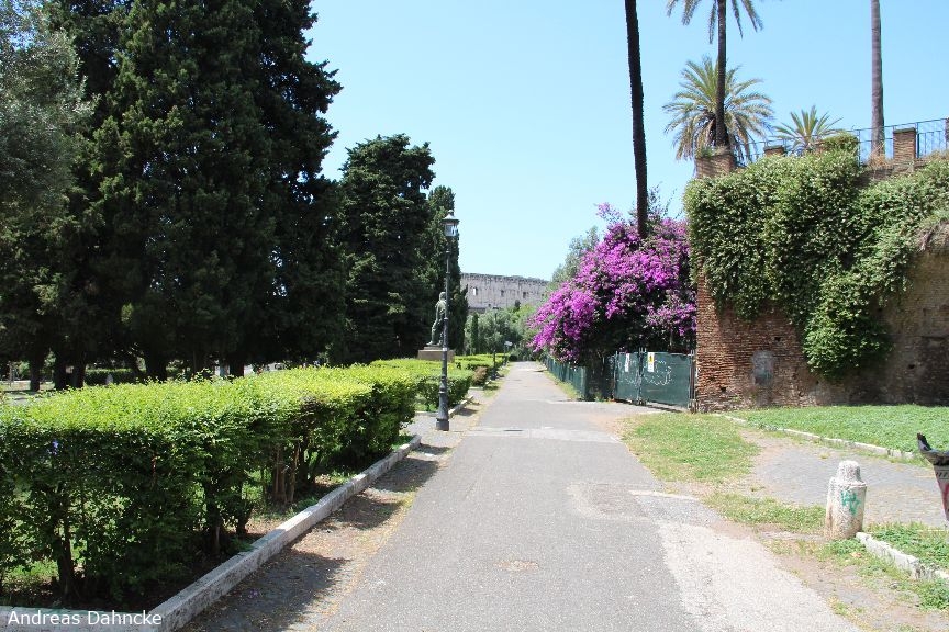 Im Hintergrund das Kolosseum aus dem Parco del colle Oppio (Viale Serapide)