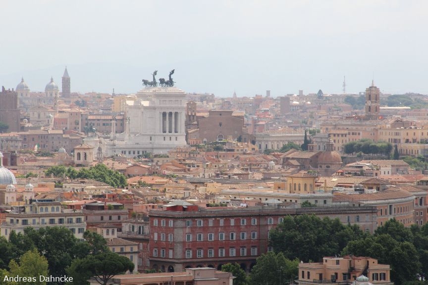 Ausblick von der Terrazza del Gianicolo über Rom, Monumento Vittorio Emanuele II und Kapitol