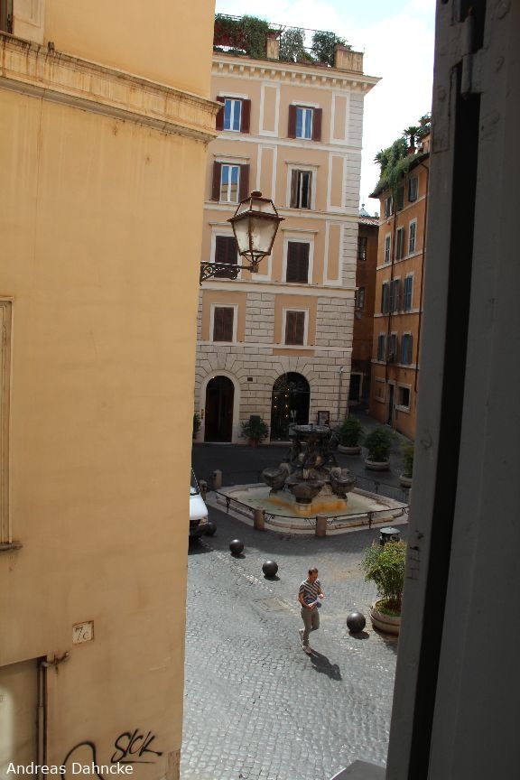 Blick aus unserem Zimmerfenster im Kame Hall auf die Fontana delle Tartarughe
