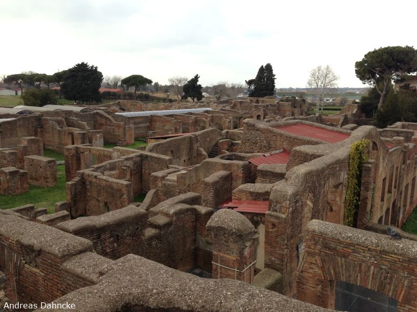 Blick vom ersten Stock des Domus di Giove e Ganimede gen Norden auf die Casa di Bacco Fanciullo, Regio I