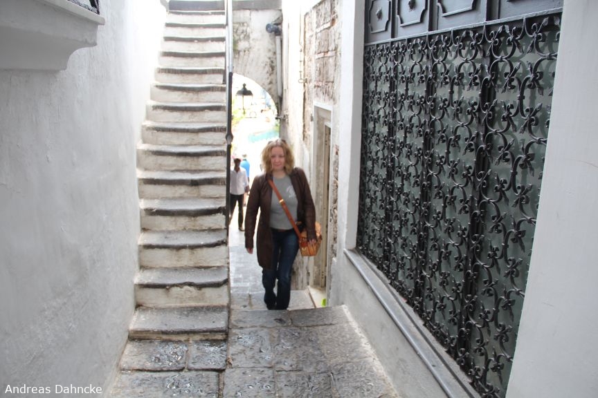 In der Gasse zur Piazza dei Dogi kommend von der Unterführung der Via Matteo Camera
