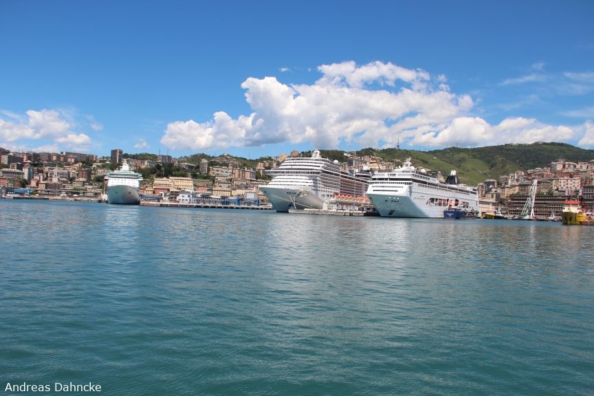 Historisches Hafenbecken von Genua mit Kreuzfahrtterminal