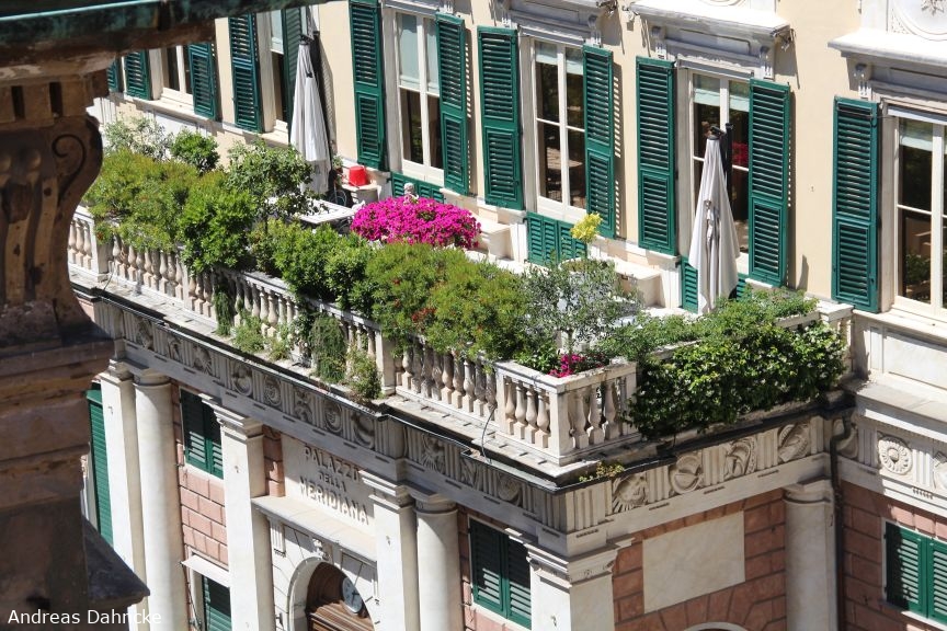 Auf der Dachterrasse des Palazzo Rosso mit Blick auf den Palazzo Grimaldi della Meridiana