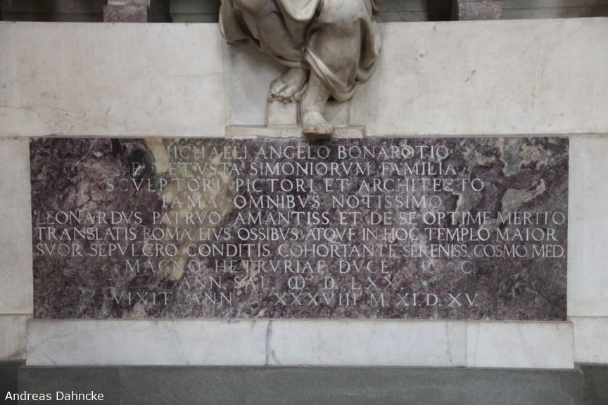 Grabinschrift des Michelangelo Buonarroti in der Basilica di Santa Croce di Firenze