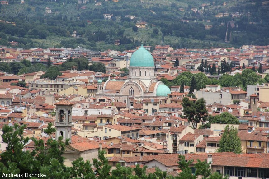 Blick von der Piazzale Michelangelo auf die Sinagoga und Museo Ebraico di Firenze