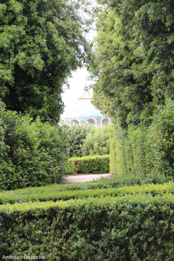 Schlecht zu sehen, im Hintergrund das Kaffeehaus des Giardino di Boboli