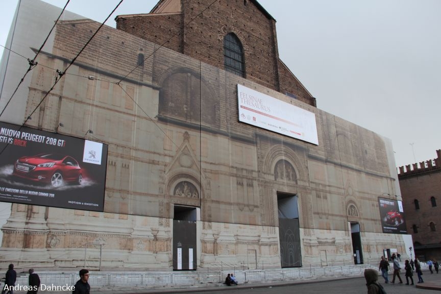 Eingerüstet, die Nordseite der Basilica di San Petrono
