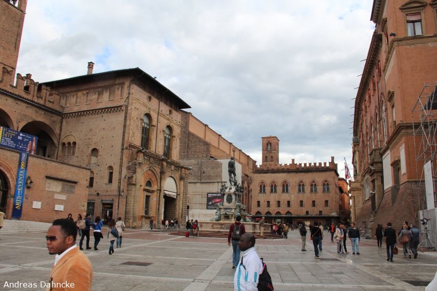 Piazza del Nettuno mit der Fontana del Nettuno und dahinter der Palazzo dei Notai