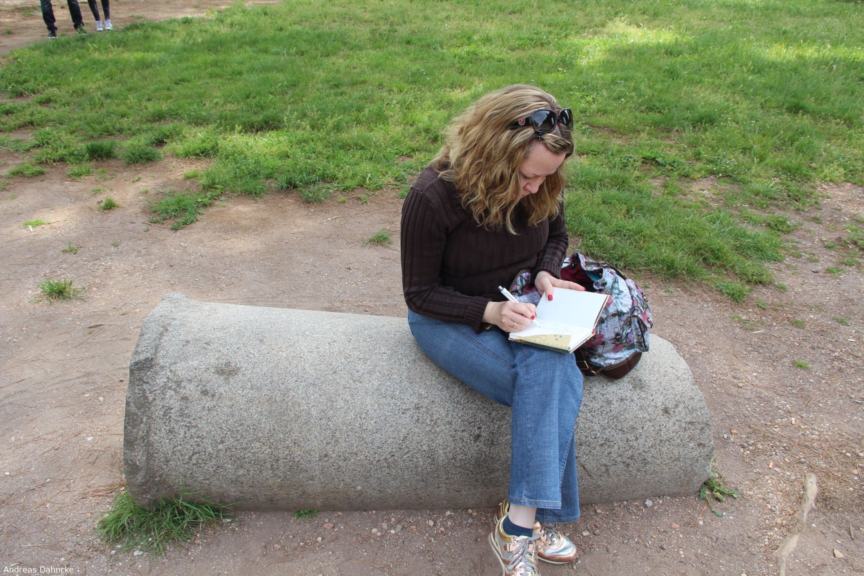 Pause sitzend auf antiken Säulen