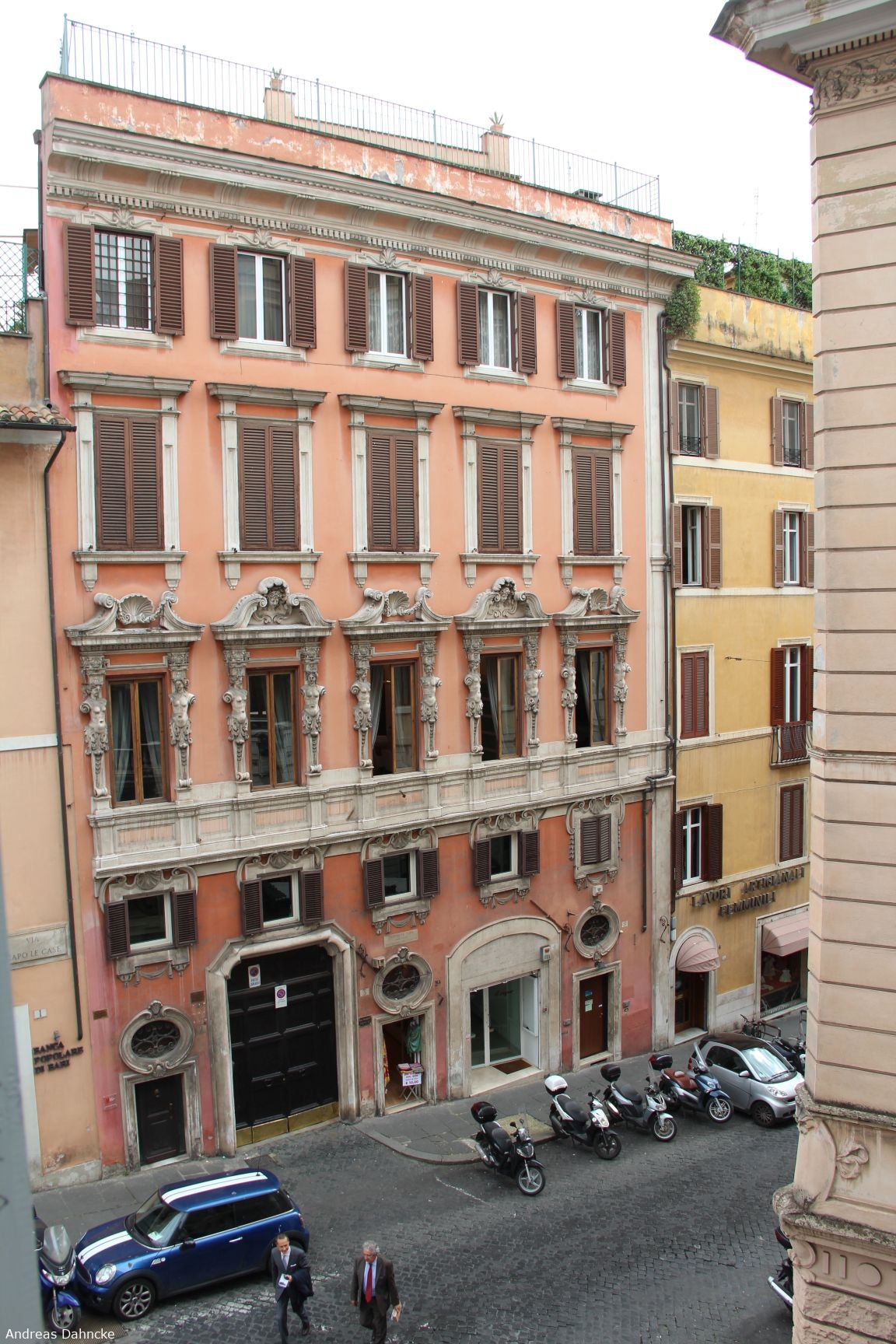 Blick aus dem Hotelzimmer auf einen Palazzo an der Via di Capo le Case