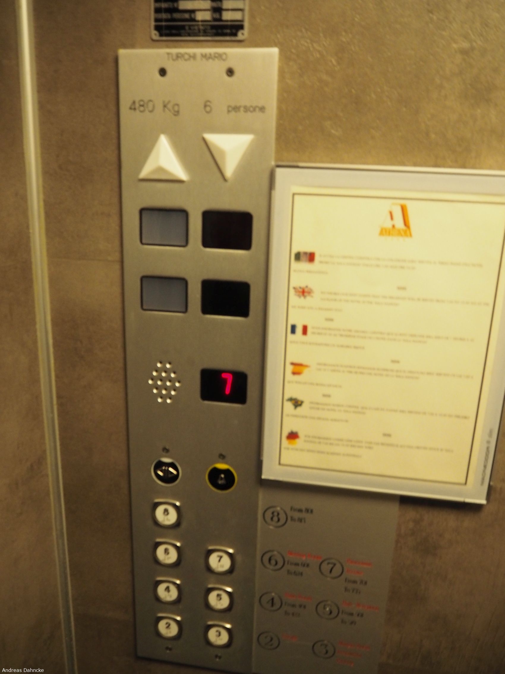 Im Fahrstuhl unseres Hotels (Athena)