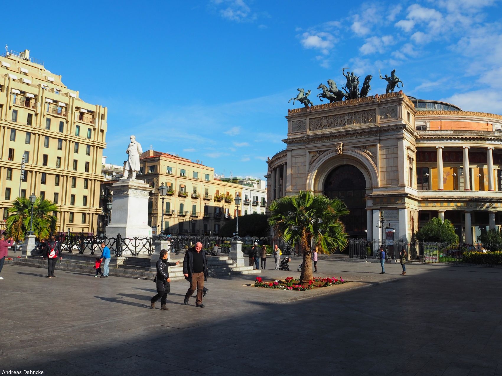 Teatro Politeama Garibaldi an der Piazza Ruggiero Settimo mit der Statue des Ruggiero Settimo