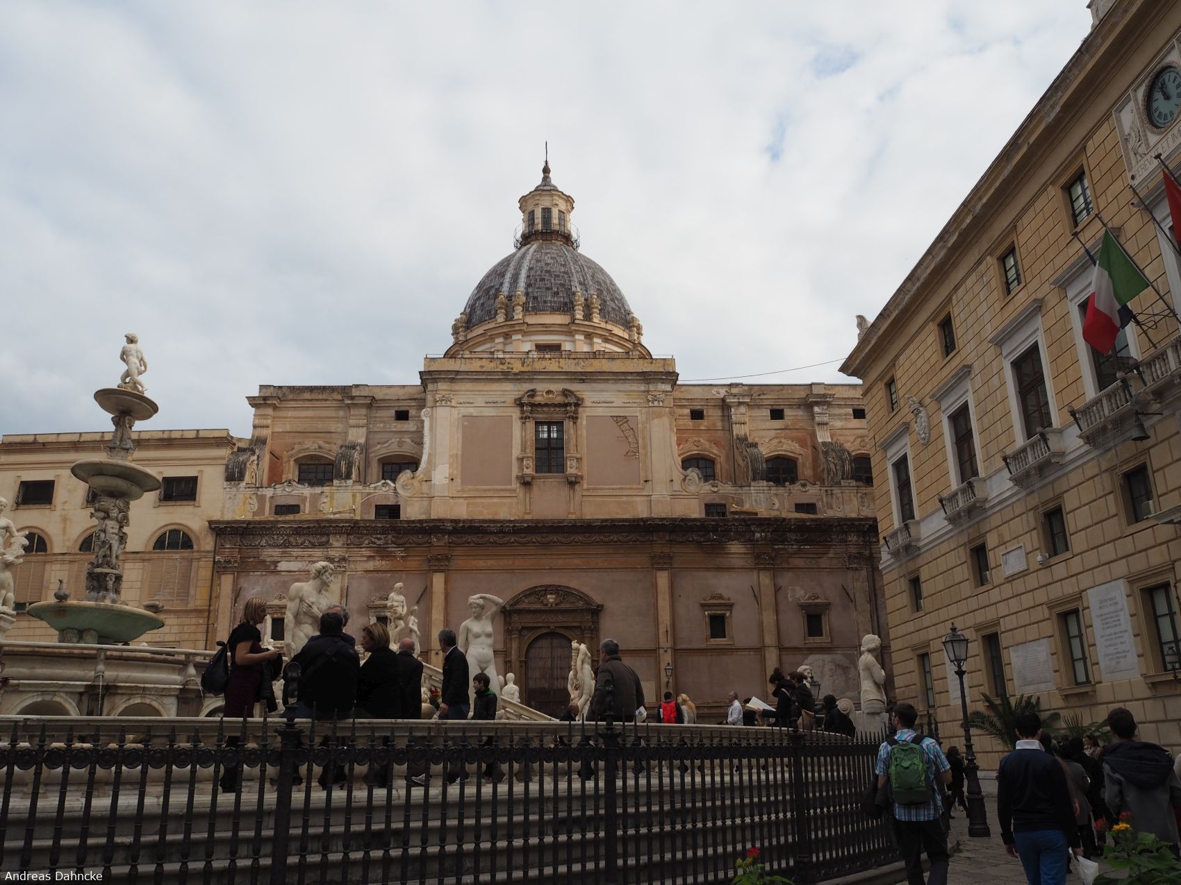 Die Piazza delle Vergogne mit der Fontana Pretoria und der Chiesa Santa Caterina