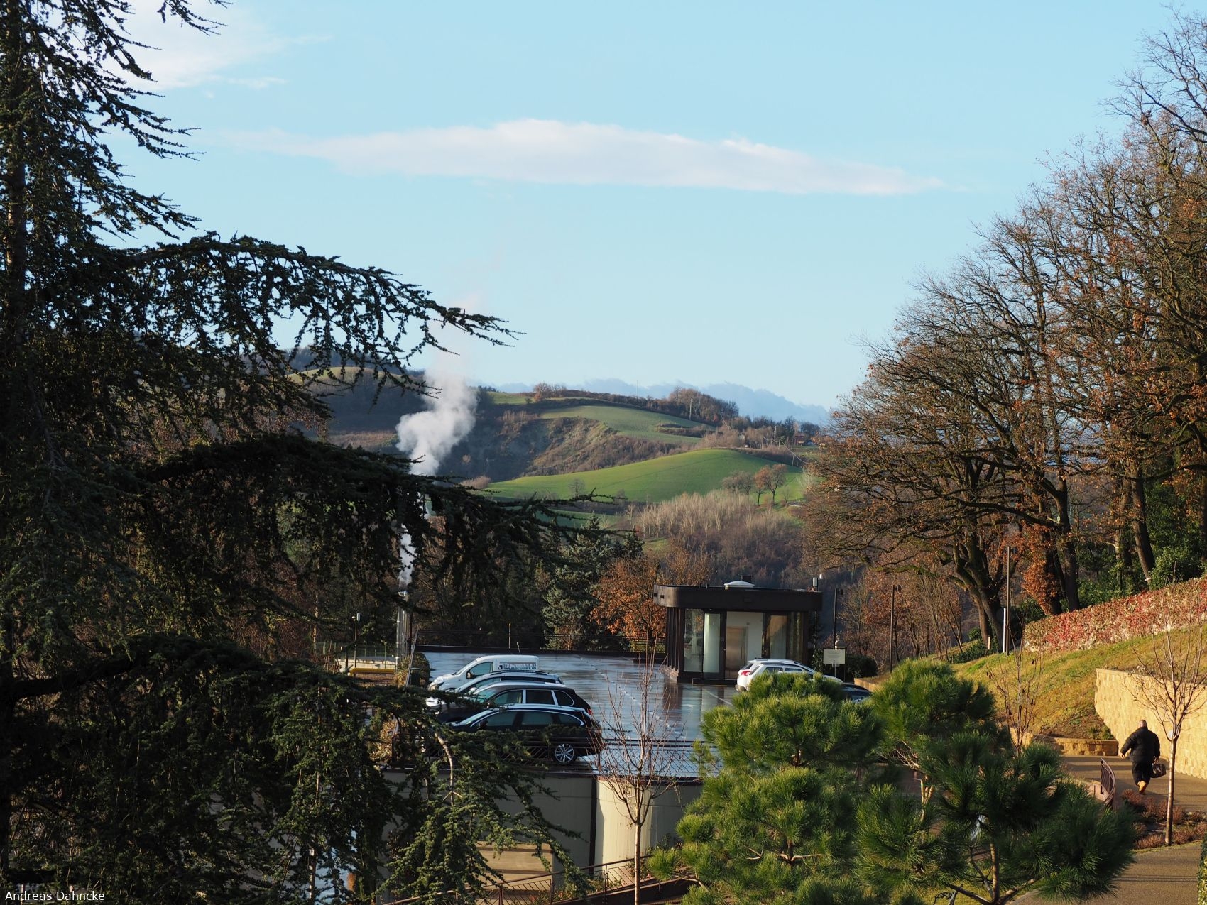 Der Ausblick aus dem Varignana Palace Resort & Spa gen Süden auf die Berglandschaft