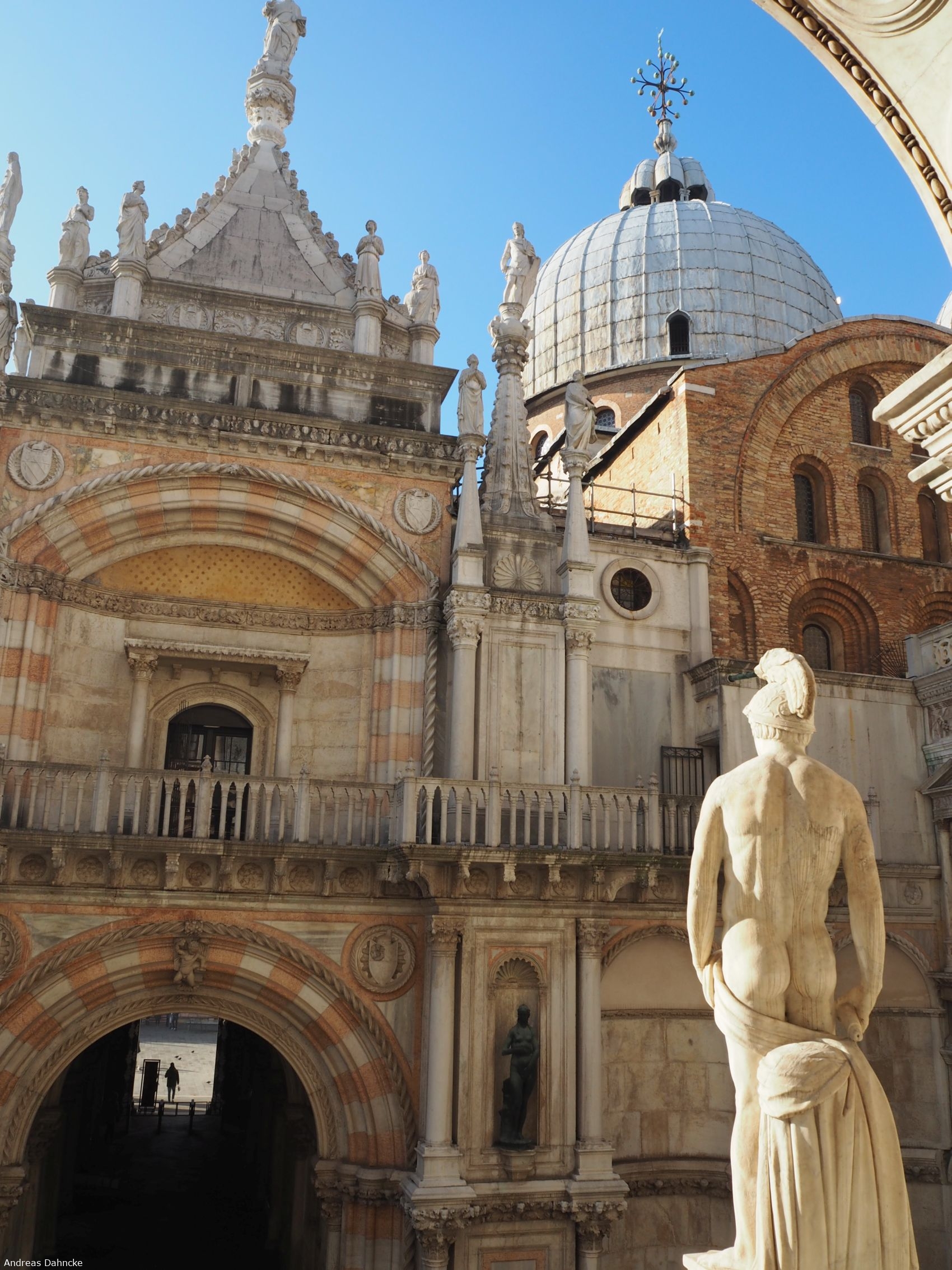 L'Arco Foscari mit der Kuppel der Basilica di San Marco und der Rückseite der Skulptur vom Mars