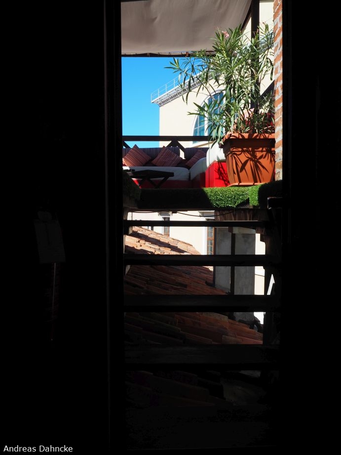 Blick von Innen auf die Dachterrasse