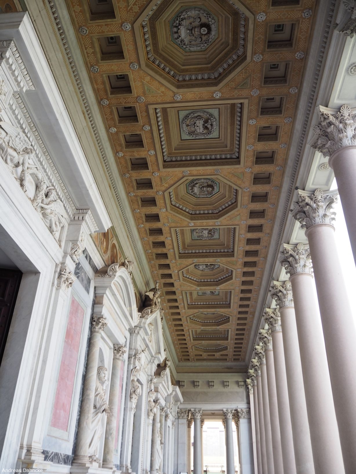 Im Säulengang vor dem Hauptportal