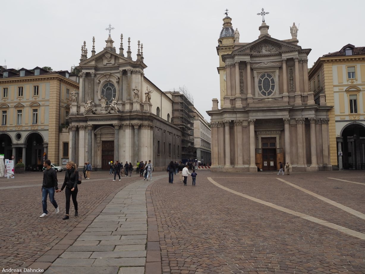 Links die Chiesa di Santa Cristina und rechts die Chiesa di San Carlo Borromeo an der Piazza San Carlo