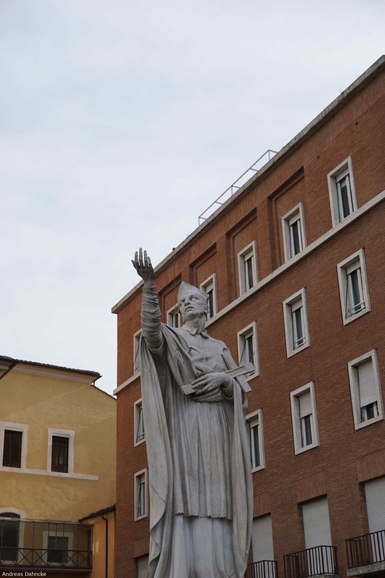 Statue des San Carlo Borromeo an der Largo degli Schiavoni auf der Piazza Augusto Imperatore