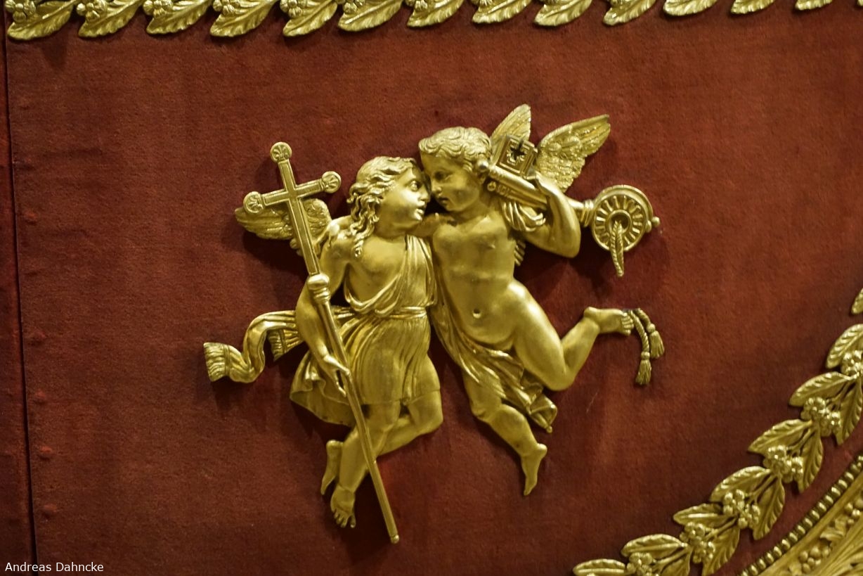 Details an der Prunkkutsche, einer Berline, die von 1826 bis 1841 von den Päpsten benutzt wurde.