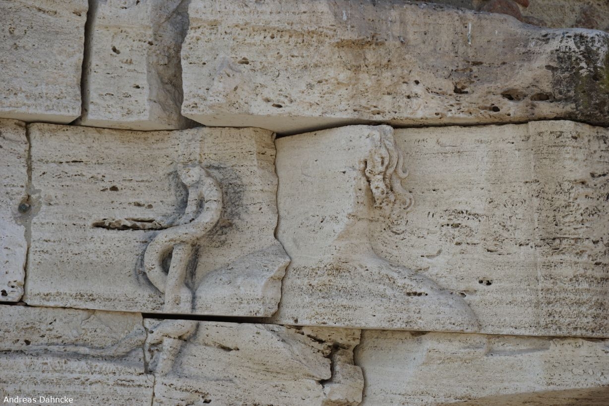 Details am alten Schiff von Aesculapius: Äskulap und der Stab mit der Schlange, Tiberinsel