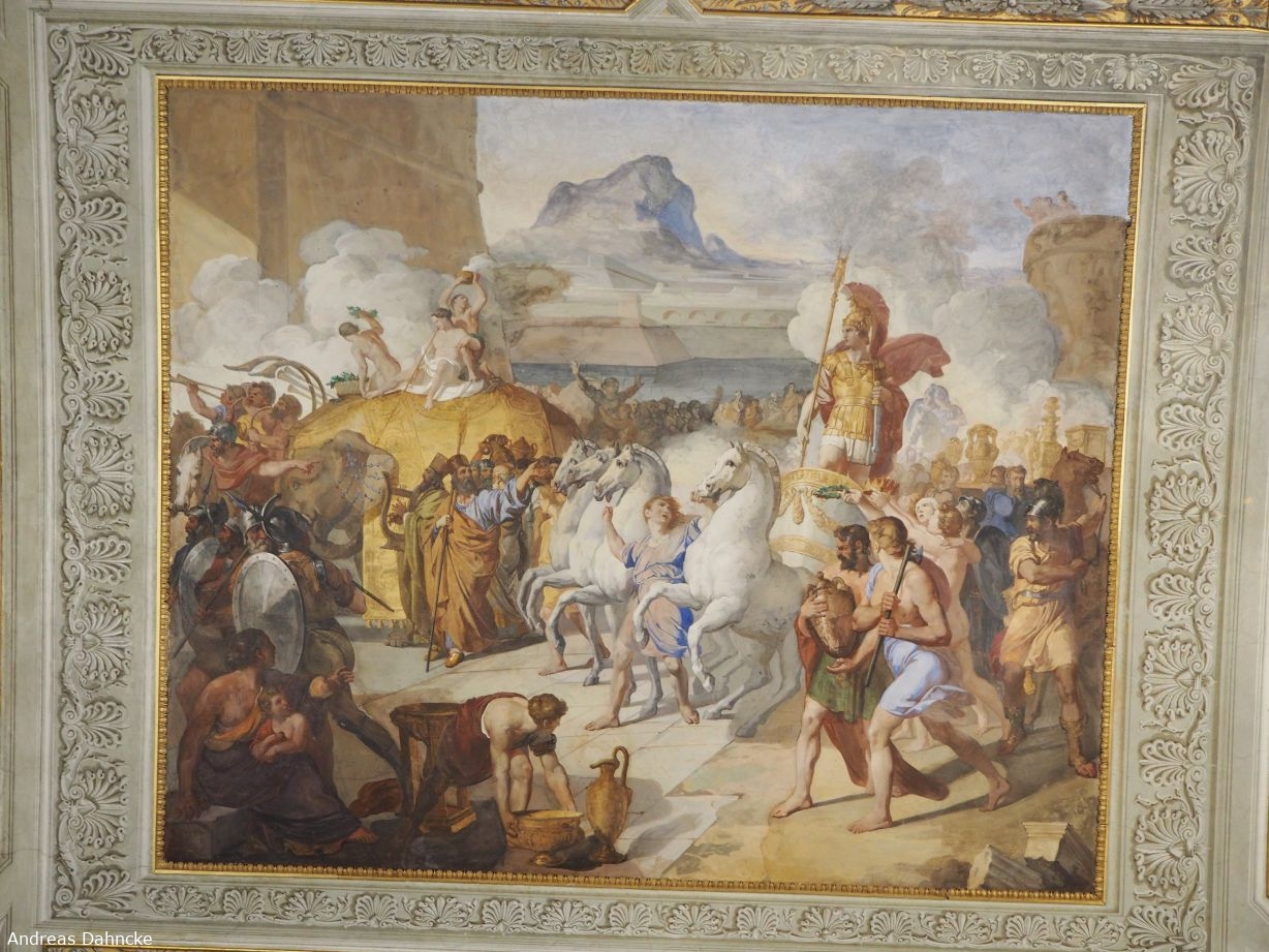 Teil des Deckenfreskos im Sala di Alessandro im Casino Nobile (Musei di Villa Torlonia)