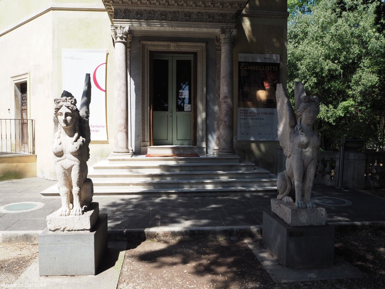 Eingang des Casino Dei Principi, Villa Torlonia mit den beiden Sfingi (Sphinxen)