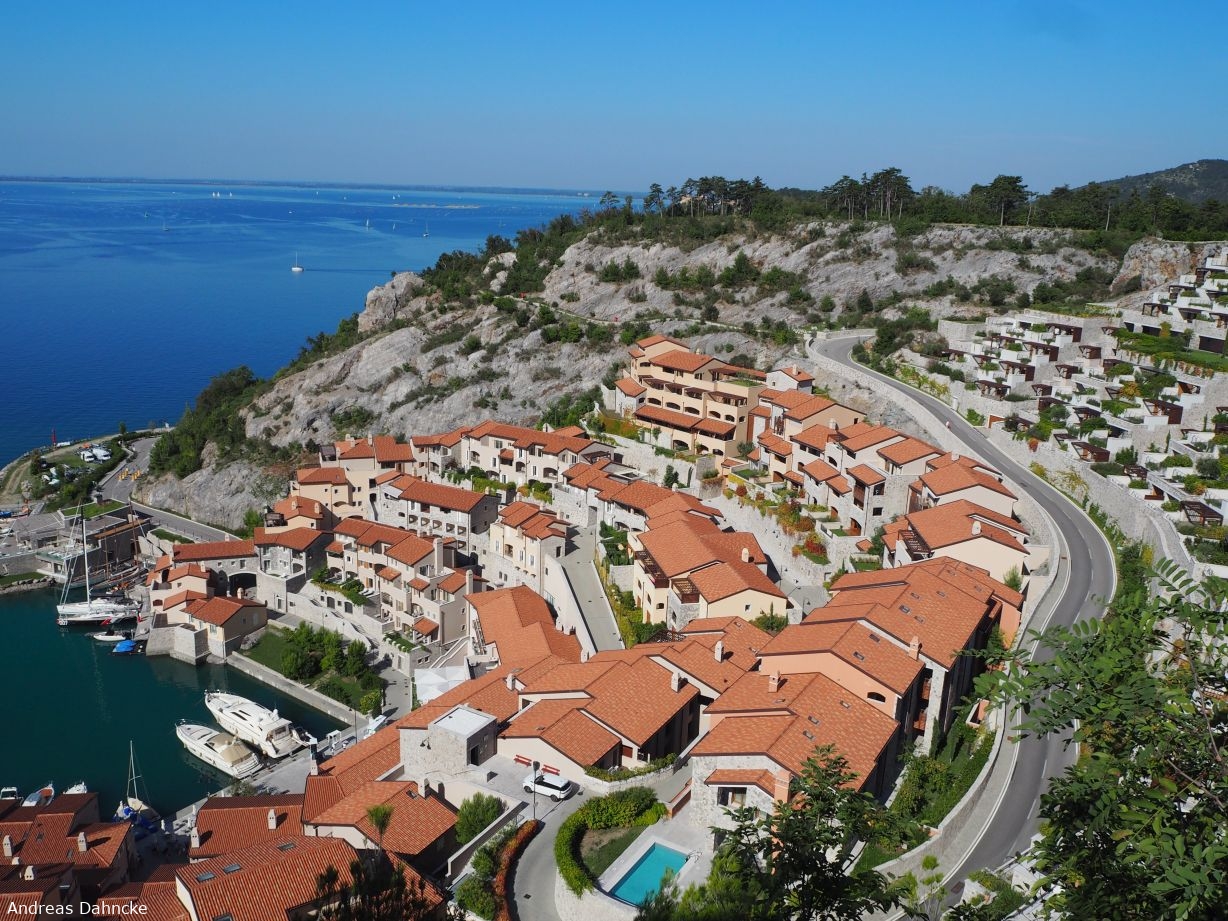 Portopiccolo von oben, vom Portopiccolo Infostand