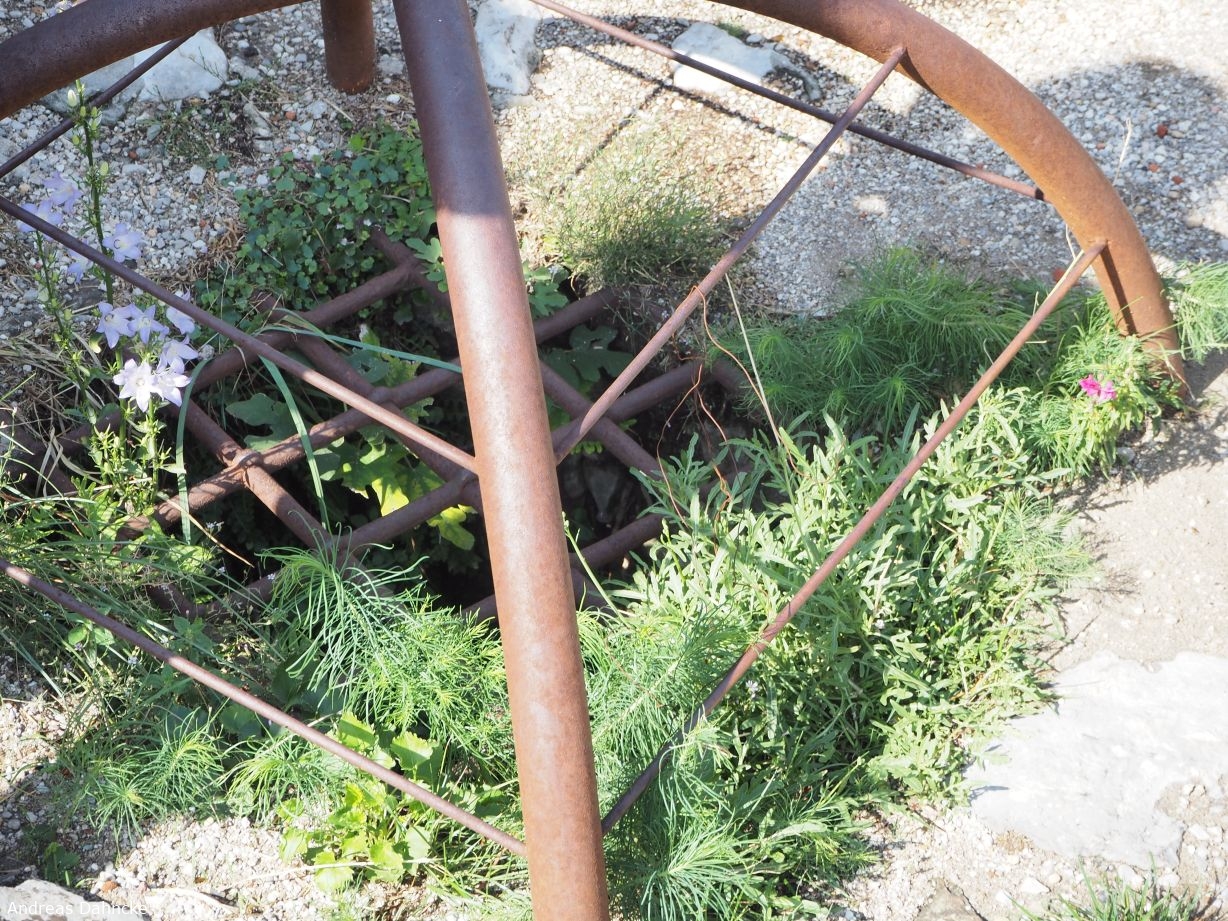 Innerhalb des Castello Vecchio di Duino ein gut abgesichertes Loch