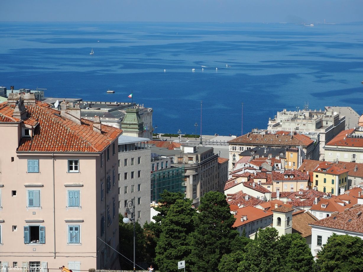 Blick in Richtung Westen vom Castello di San Giusto auf den Golf von Triest, Trieste