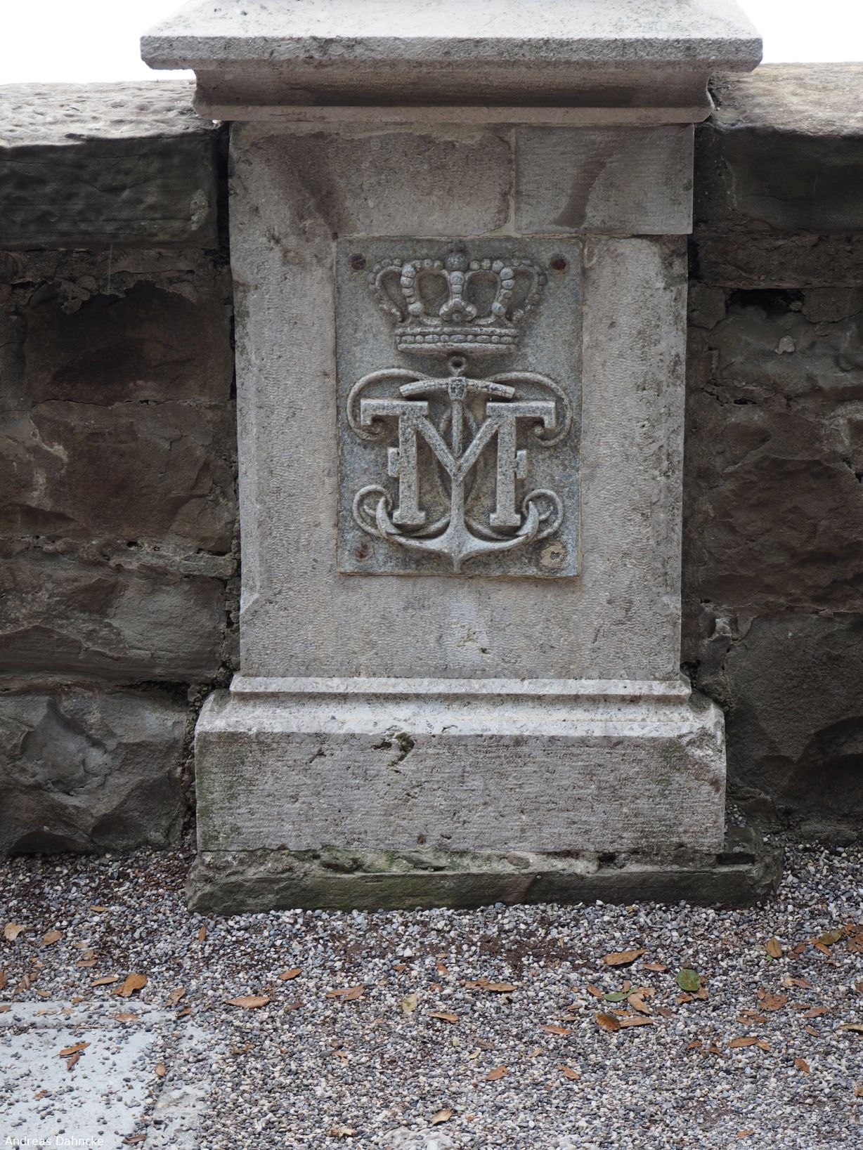 Monogramm von Erzherzog Ferdinand Maximilian von Österreich an der Zuwegung des Castello Miramare.