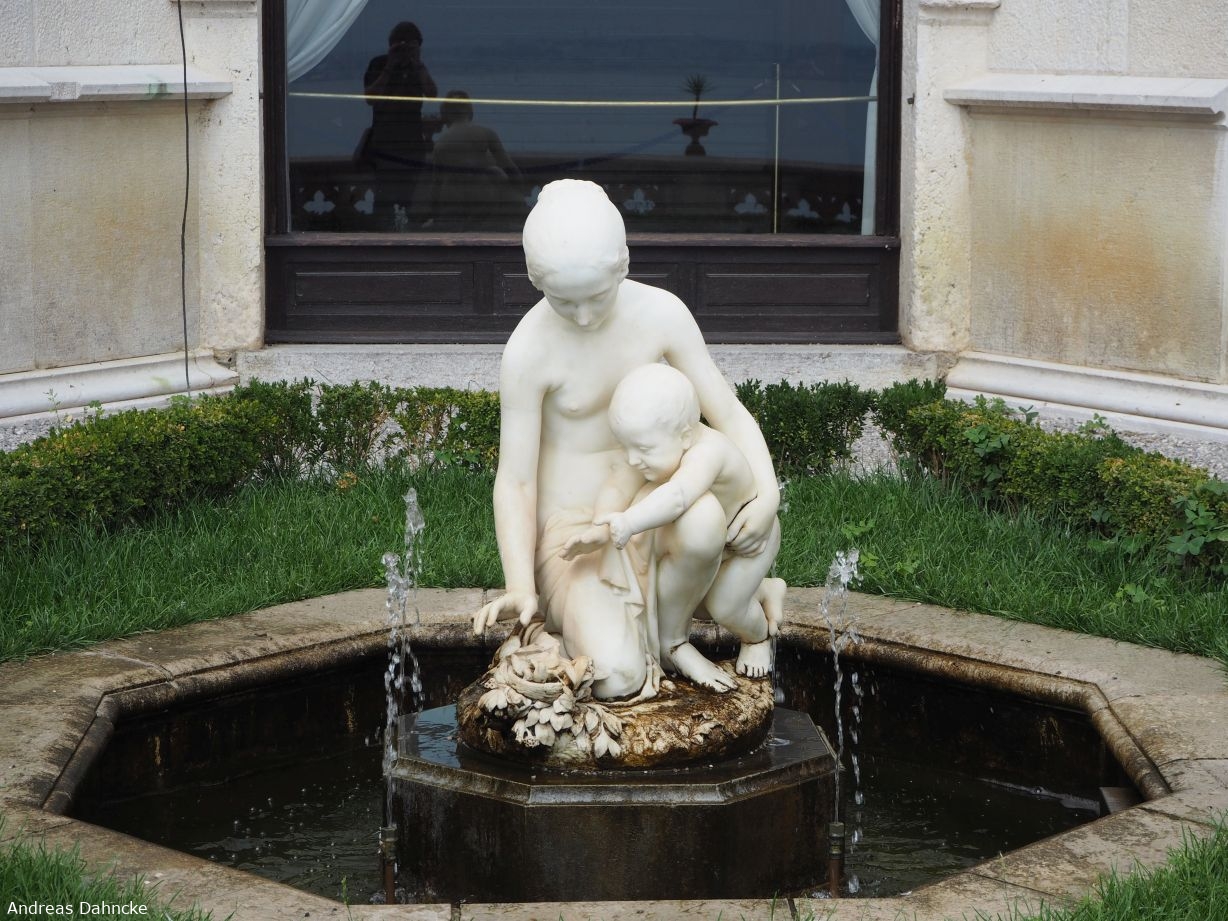 Springbrunnen mit Frau und Baby am Castello Miramare