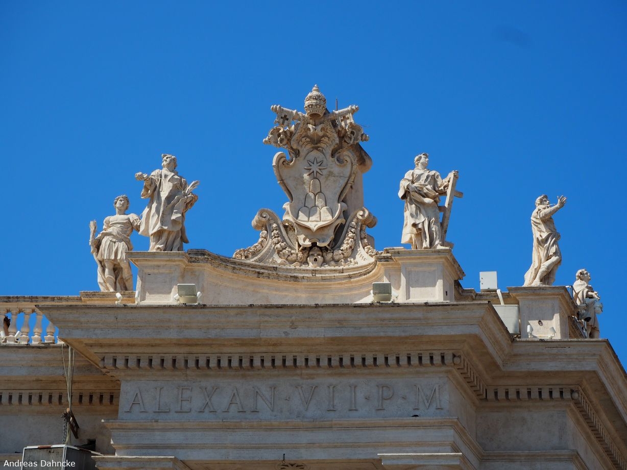 Auf den Kolonnaden des Petersplatzes (Piazza San Pietro) mit 5 der 140 Heiligenstatuen