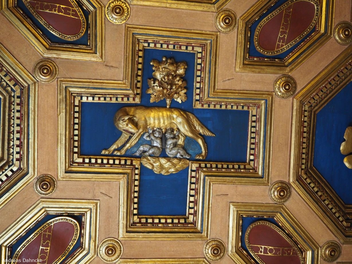 Musei Capitolini. Deckenkassete mit Romulus, Remus und der Wöflin im Palazzo dei Conservatori