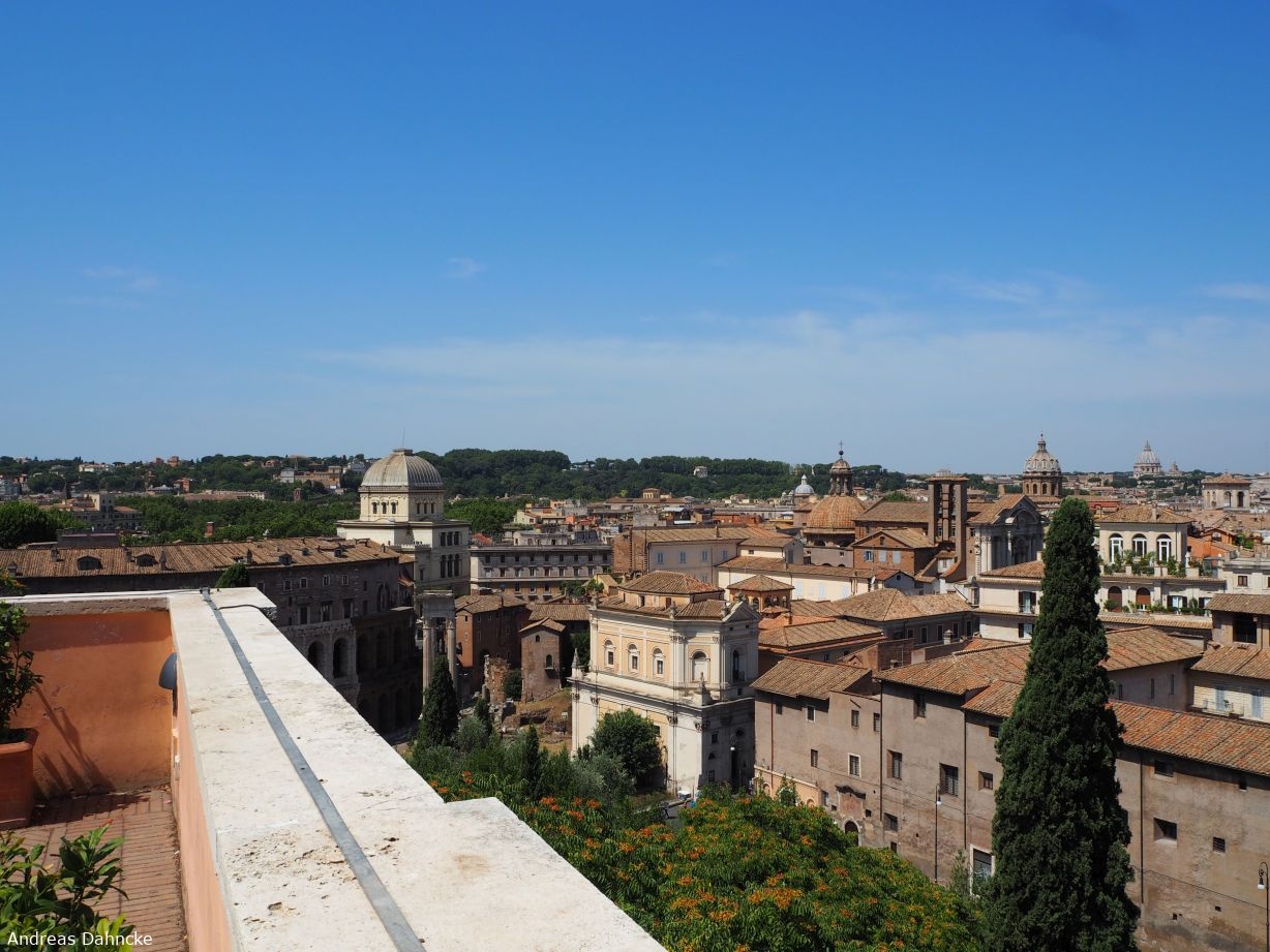 Musei Capitolin. Blick von der Dachterasse des Bistros auf Rom