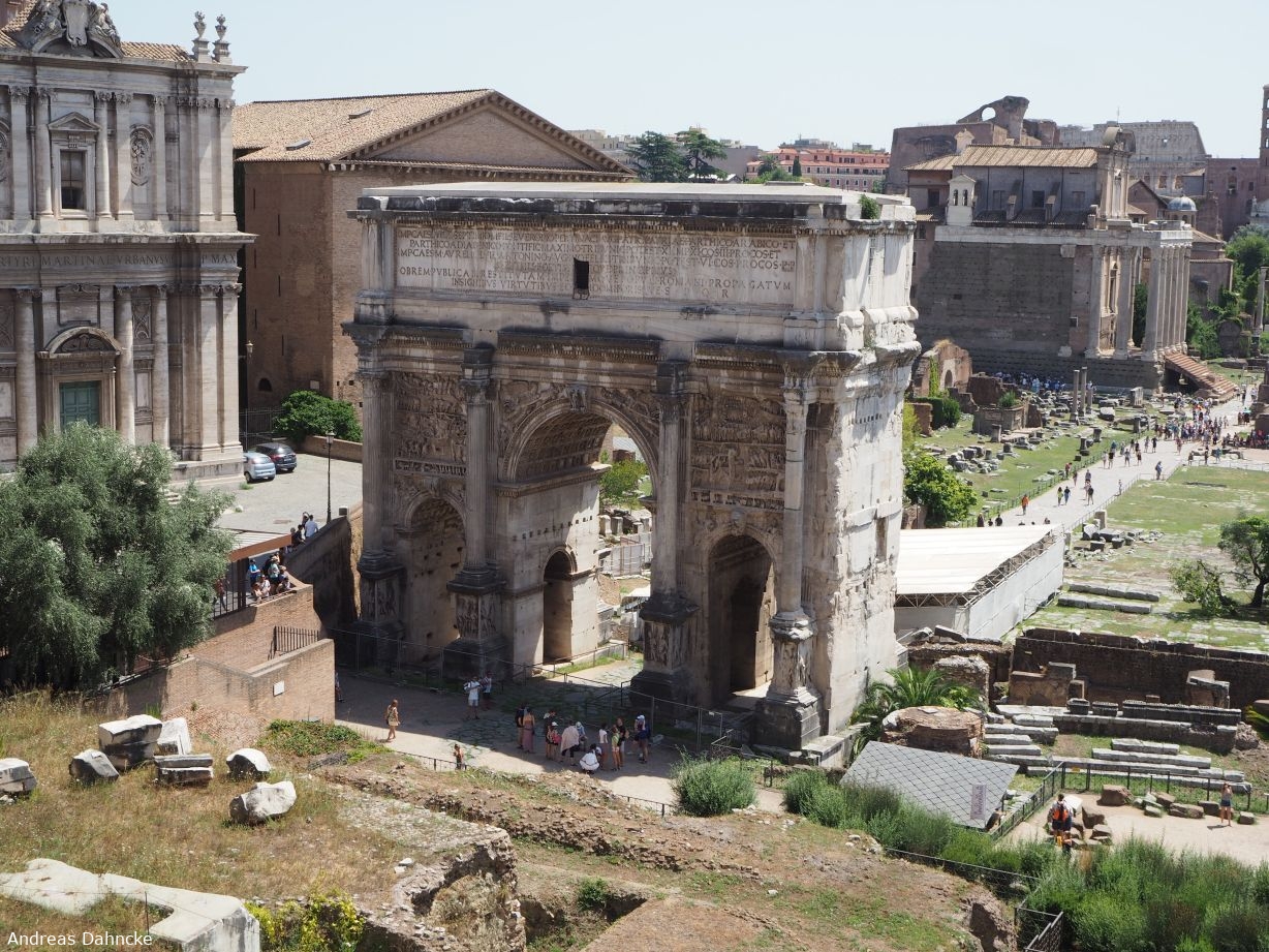 Musei Capitolini. Blick vom Tabularium auf den Arco di Settimio Severo im Foro Romano