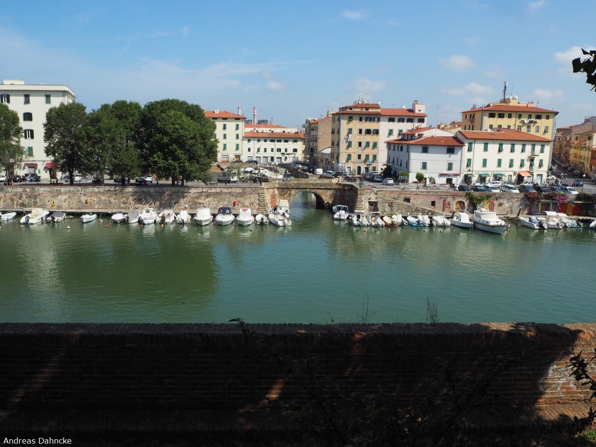 Blick von der Festung Fortezza Nuovo auf den Fosso Reale, hinten die kleine Brücke Pontino