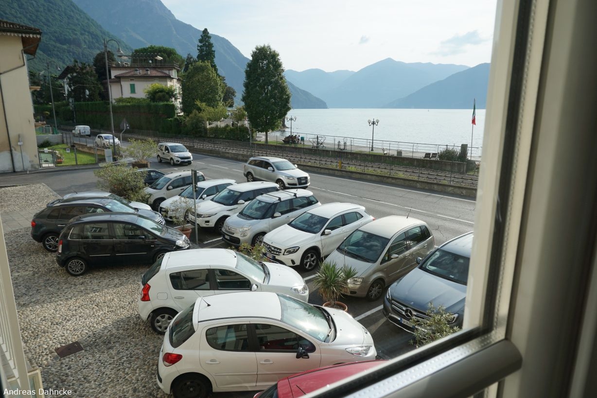 Blick aus dem Hotel auf die Via Papa Paolo VI und den Lago D'Iseo