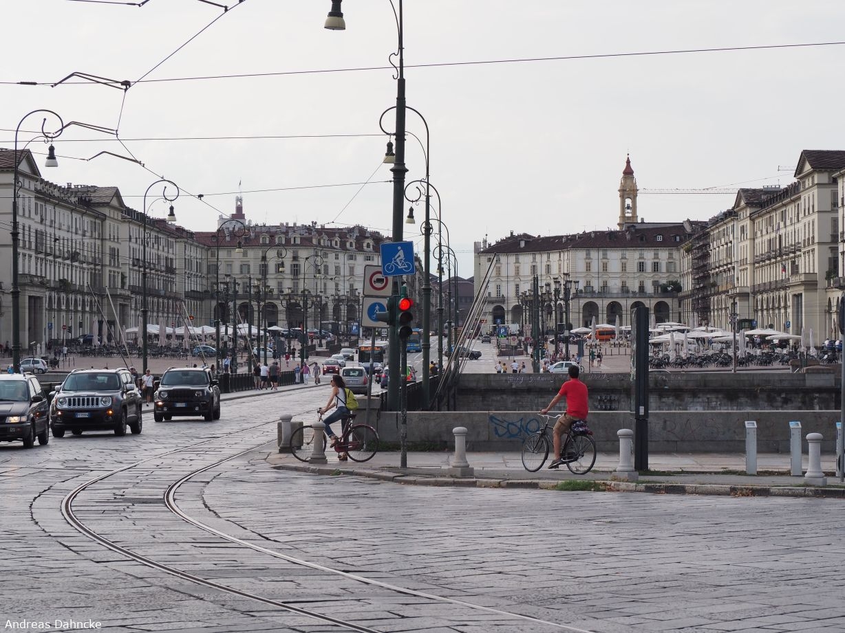 An der Ponte Vittorio Emanuele I, hinten die Piazza Vittorio Veneto