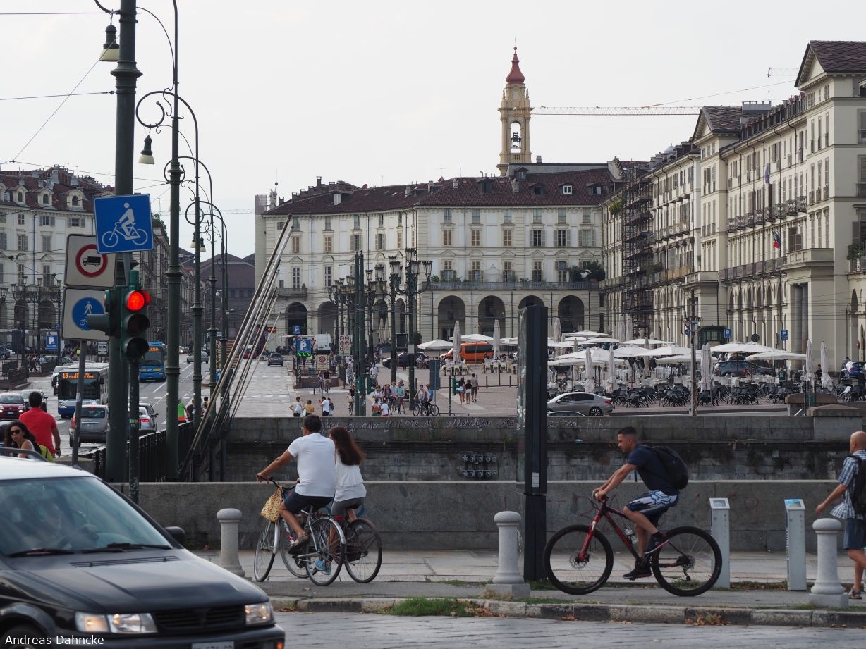 An der Ponte Vittorio Emanuele I, hinten die Piazza Vittorio Veneto