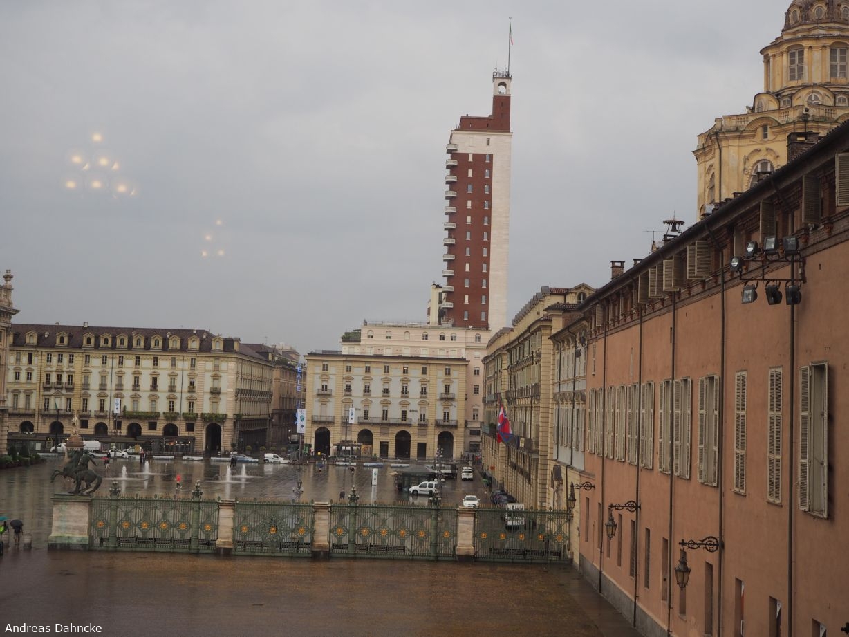 Vorne: Piazetta Reale, hinten: Piazza Castello, ganz hinten: Torre Littoria