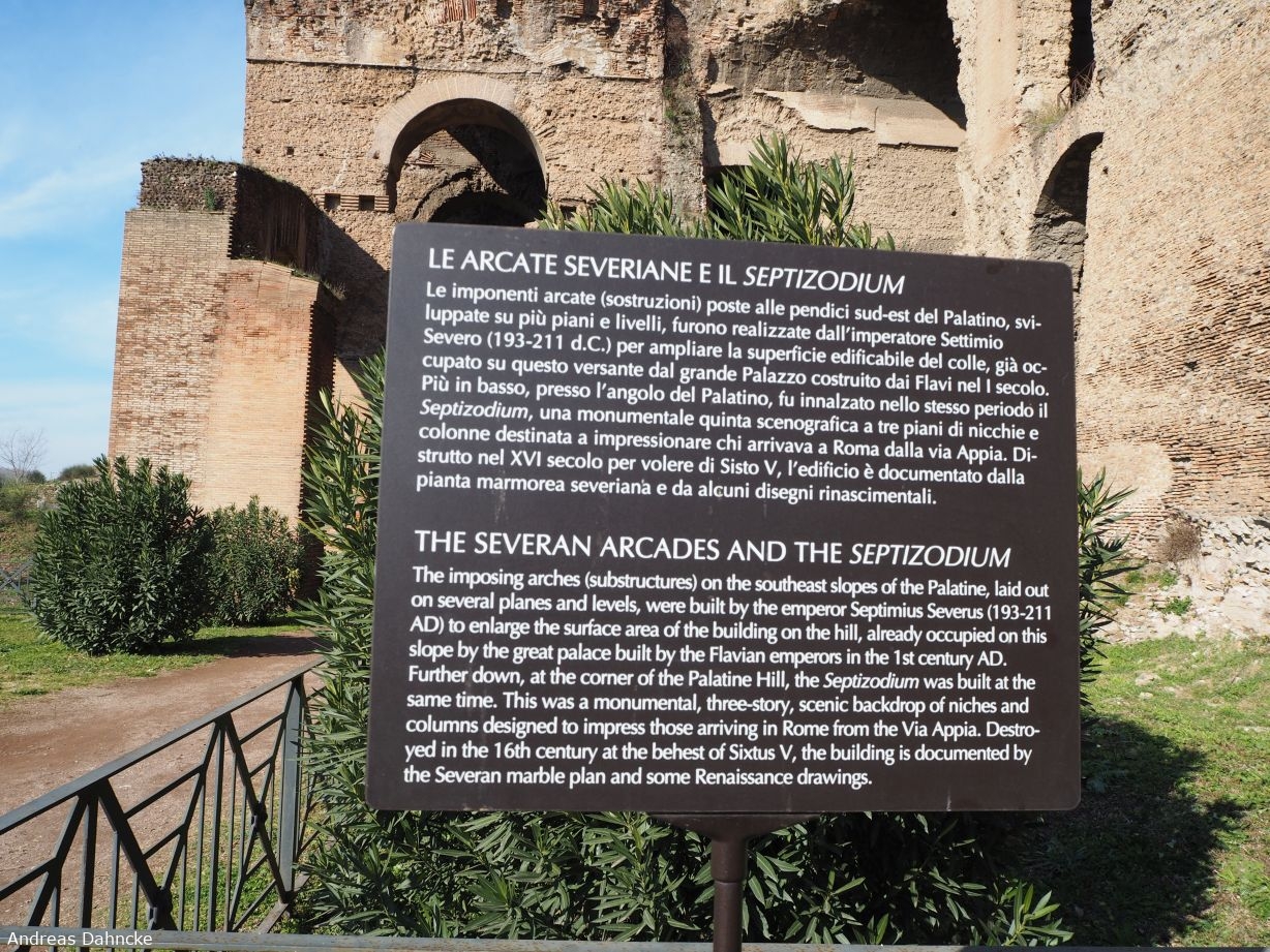 Palatin: Infoschild über die Arcate Severiane und das Septizodium