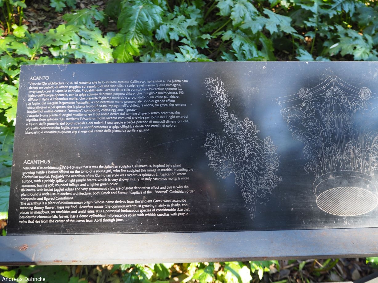 Palatin: Infotafel zur Pflanze Akanthus mit Bezug zur Architektur.