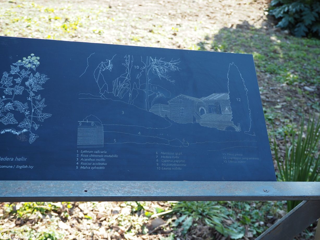 Palatin: Infotafel typischer Hof vor römischen Zeiten.