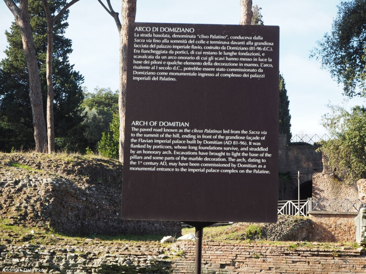 Palatin: Infoschild zum ehemaligen Arco di Domiziano.