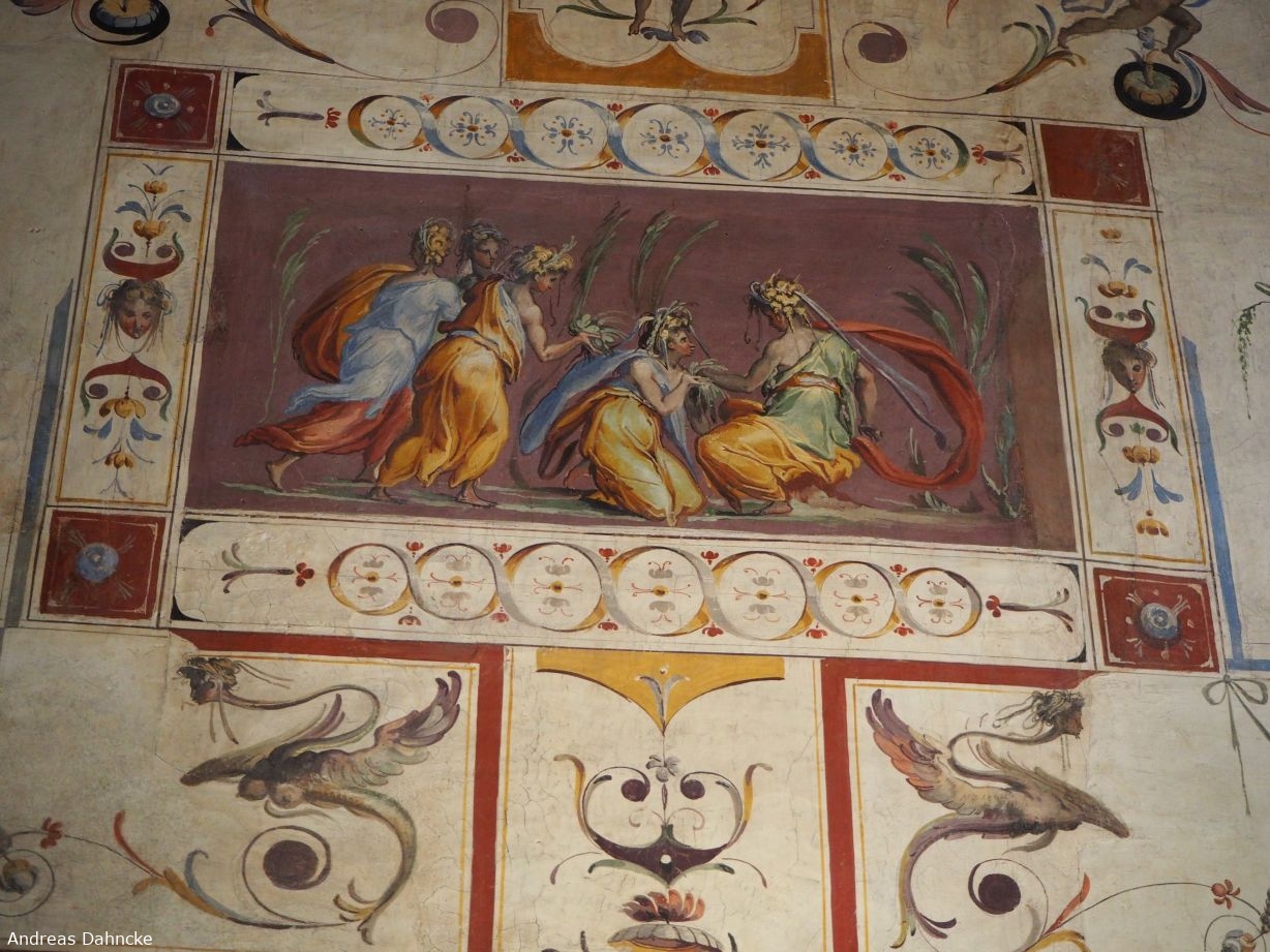 Palazzo Vecchio/Sala di Lorenzo il Magnifico: "figure femminili a colloquio" by Vasari Giorgio, Marchetti Marco genannt Marco da Faenza